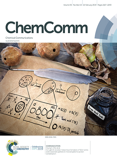 266 [20-10]. [11.18] Ascorbic Acid-Mediated Reductive Disassembly of Fe3+-Tannic Acid Shells in Degradable Single-Cell Nanoencapsulation. Lee, H.; Park, J.; Han, S. Y.; Han, S.; Youn, W.; Choi, H.; Yun, G.; Choi, I. S. Chem. Commun. 2020, 56, 13748-13751. [Full Article] [Front Cover]