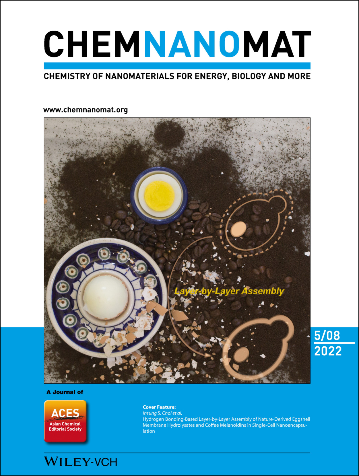 283 [22-01]. [05.05] Hydrogen Bonding-Based Layer-by-Layer Assembly of Nature-Derived Eggshell Membrane Hydrolysates and Coffee Melanoidins in Single-Cell Nanoencapsulation. Han, S. Y.; Yun, G.; Nguyen, D. T.; Kang, E. K.; Lee, H.; Kim, S.; Park, J. H.; Kim, B. J.; Choi, I. S. ChemNanoMat 2022, 8(5), e202100535. [Full Article] [Cover Picture]